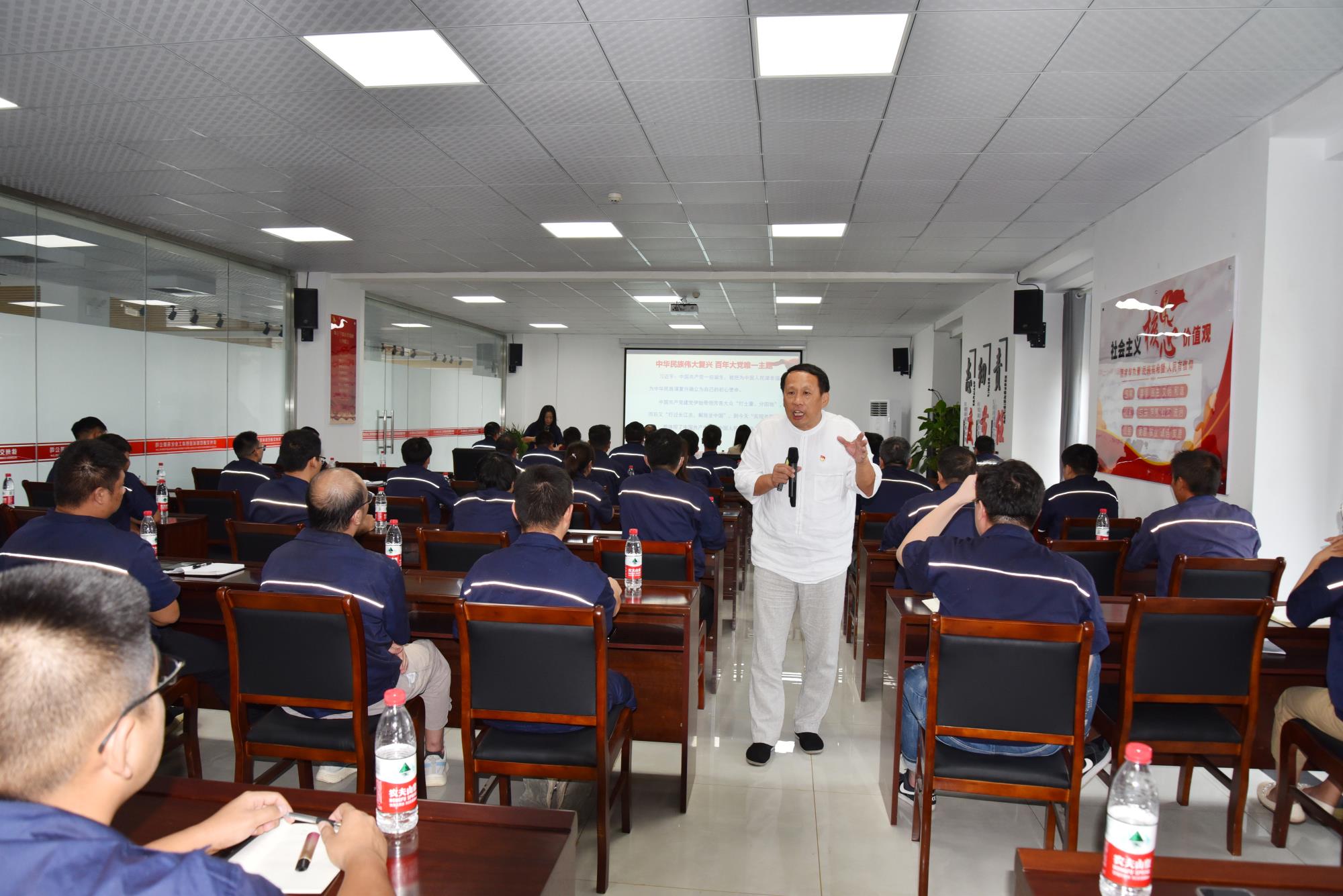 本次報告會(huì )由徐州市總工會(huì )主辦,徐州交控誠意橋梁公司協(xié)辦,這也是今年交控誠意橋梁公司職工大講堂的第三期。報告會(huì )由徐州市總工會(huì )宣教和網(wǎng)絡(luò )工作部副部長(cháng)李東麗主持,徐州市委宣講團、團省委青年講師團成員,徐州工程學(xué)院馬克思主義學(xué)院副院長(cháng)周海航應邀作題為《奏響中華民族偉大復興的最強音》的宣講報告。報告史料翔實(shí)、深入淺出,鮮活生動(dòng),結合中國共產(chǎn)黨黨史教育,深刻闡釋習近平總書(shū)記“七一”重要講話(huà)的精神實(shí)質(zhì)和核心要義,生動(dòng)詮釋偉大建黨精神和中國共產(chǎn)黨精神譜系的豐富內涵,緊密結合交控誠意橋梁公司的工作實(shí)際,深入解讀以史為鑒、開(kāi)創(chuàng )未來(lái)“九個(gè)必須”的根本要求,受到交控誠意橋梁公司廣大干部職工的熱烈歡迎!
